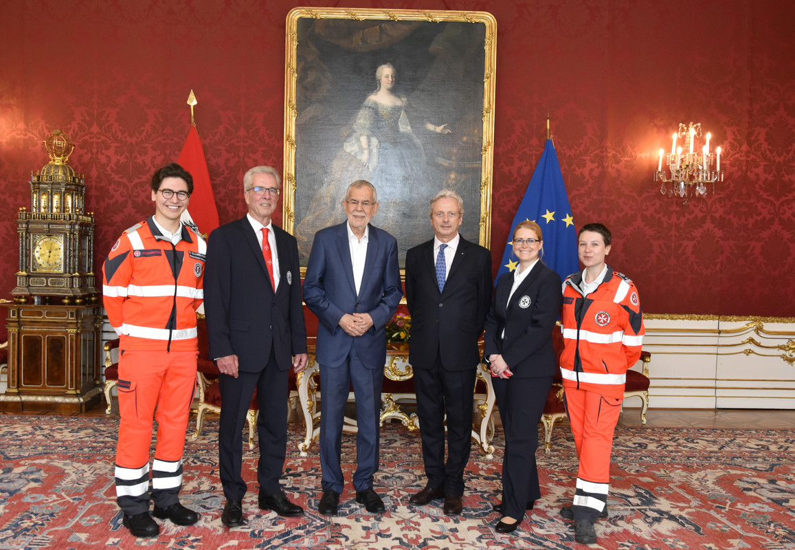 Exakt 50 Jahre nach der Gründung der Johanniter in Österreich empfing Bundespräsident Alexander Van der Bellen am 21. Juni 2024 eine Johanniter-Delegation in der Hofburg.