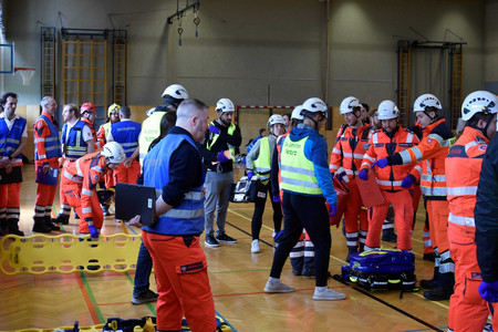 Insgesamt wurden in einer Schule vier Großschadenslagen simuliert. Die teilnehmenden Sanitäter:innen arbeiteten Hand in Hand mit Notärzt:innen in Ausbildung, die im Rahmen ihres Abschlusskurses der Notarztausbildung vor Ort waren. Parallel zu den Szenarien erhielten einige Teilnehmende Gelegenheit, sich im Rahmen von Probeprüfungen und Szenarientrainings weiter vorzubereiten. Die Simulationen wurden durch Laiendarsteller:innen unterstützt, die realitätsnahe Notfallbilder ermöglichten.