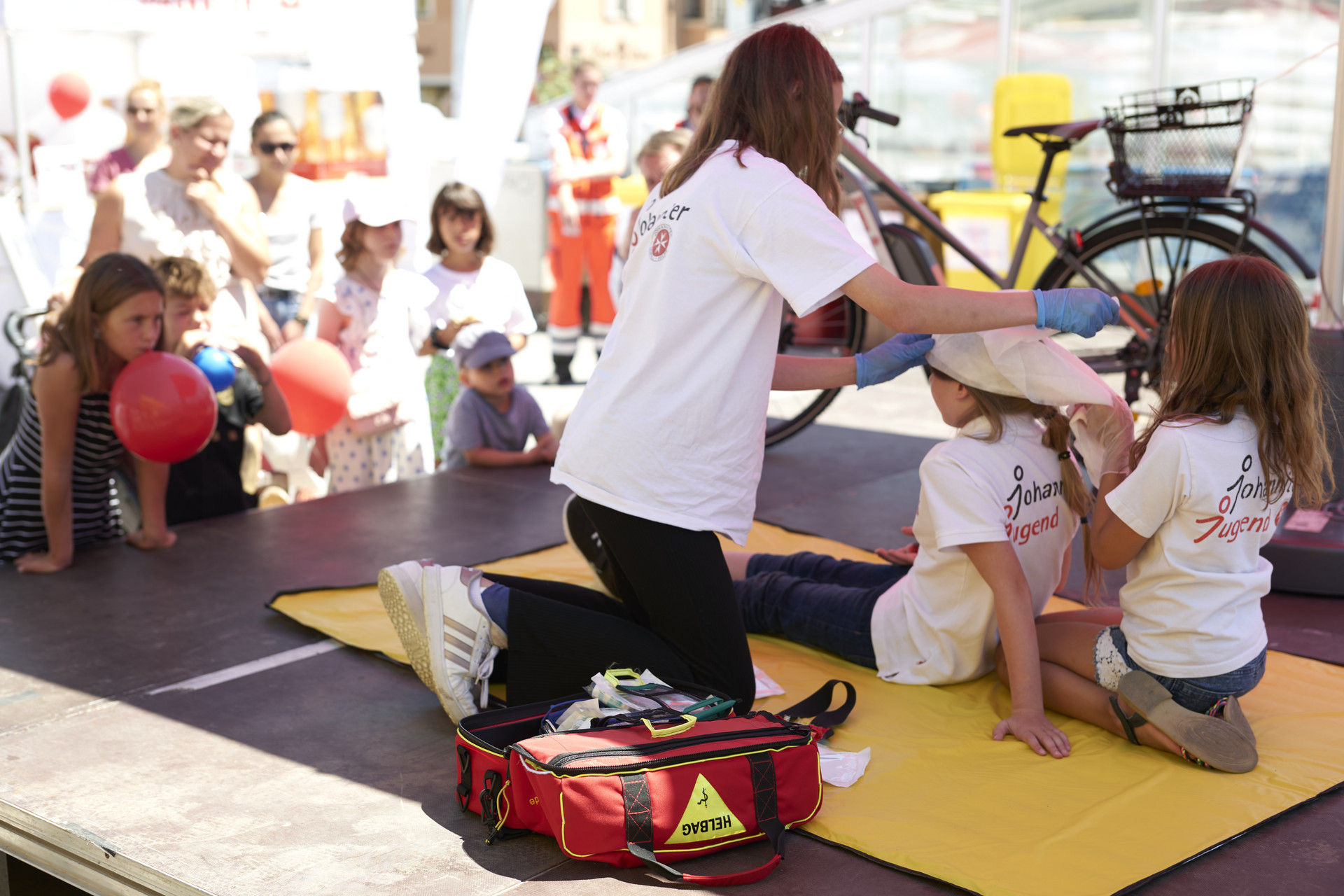 Auch die Johanniter Jugend zeigt in einer Vorführung was sie im Bereich Erste Hilfe gelernt haben.