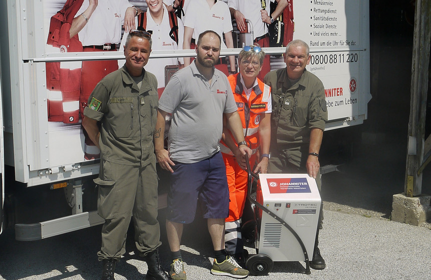 Nach wie vor kämpfen viele Klagenfurter Haushalte mit den Folgen des Hochwassers, welches Anfang August die Landeshauptstadt in Atem hielt. Die Johanniter unterstützen die betroffenen Haushalte mit Trocknungsgeräten. Durch die Initiative von Christiane Rusterholz, Geschäftsführerin der Johanniter in Kärnten, wurden in Zusammenarbeit mit den Johannitern Deutschland rund 100 Trocknungsgeräte für Kärnten organisiert. In Klagenfurt stehen über 30 Geräte kostenlos für die Bevölkerung zur Verfügung. Sie wurden am 15. September aus Dresden angeliefert. Damit können noch feuchte Wände in Kellern und Wohnräumen wieder getrocknet werden.