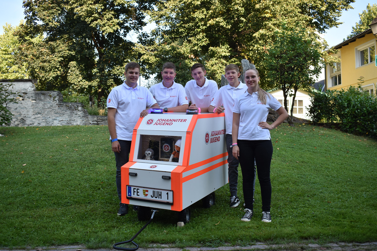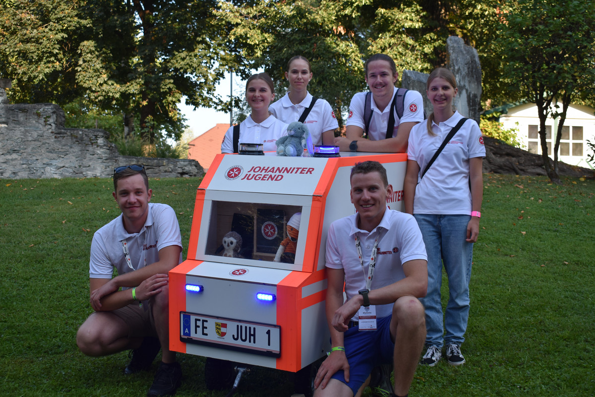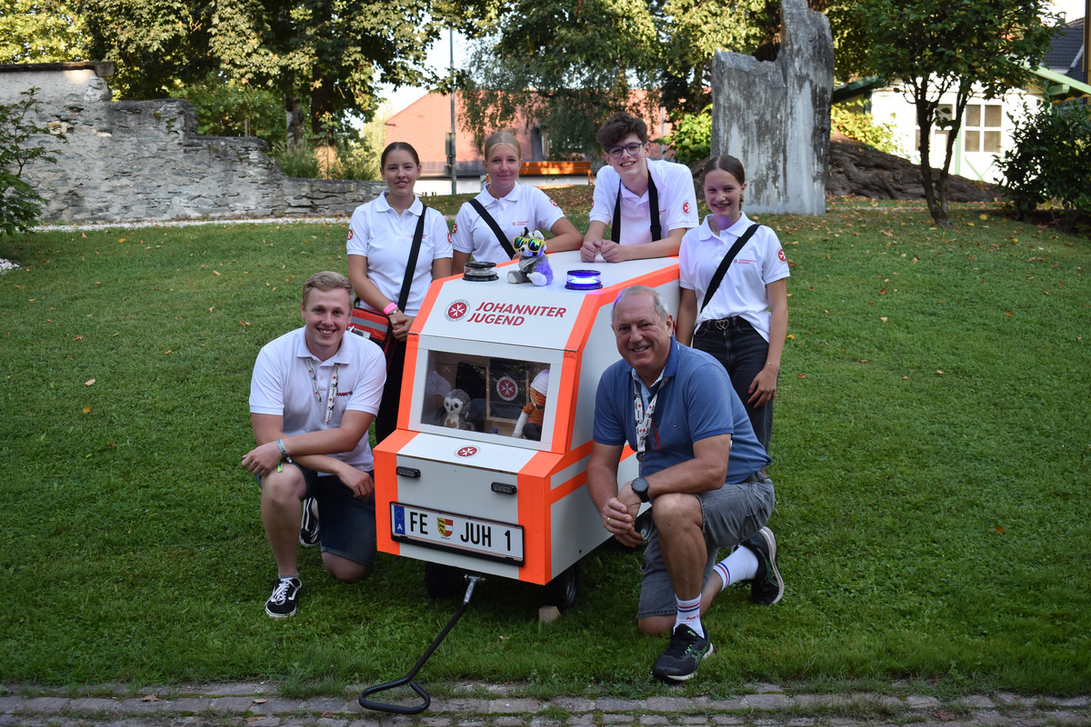 Aber nicht nur bei den Wettbewerben zog die Johanniter-Jugend die Blicke auf sich: Heuer wurden die Teilnehmenden erstmals vom neuen Jugend-Rettungswagen begleitet - dieser wurde mit Spenden der Firmen Holzbau Zwatz und Obi Feldkirchen von den Jugendlichen selbst gebaut und bietet Platz für das Material der Bewerbsgruppen sowie auch zwei Sitzplätze für Maskottchen.