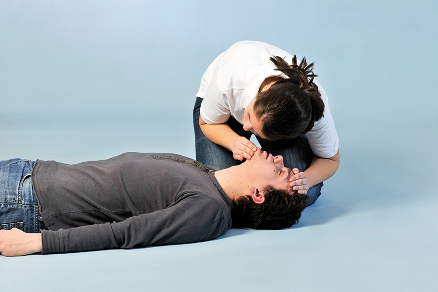 - Halten Sie den Kopf der bewusstlosen Person überstreckt.