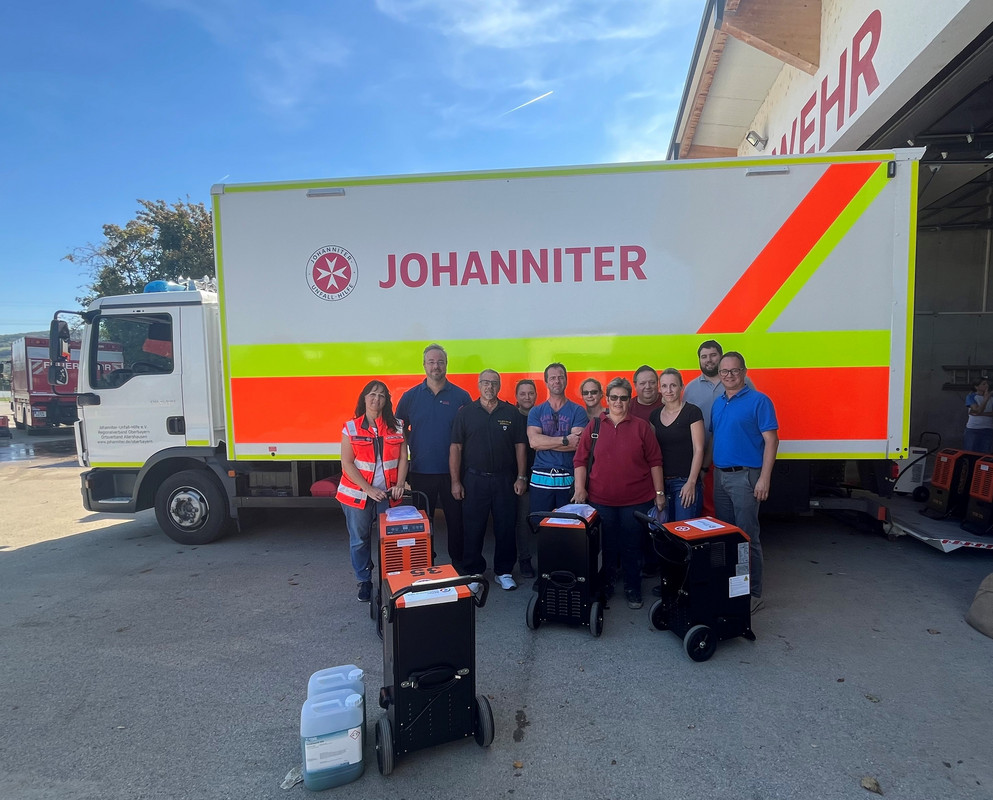 Auch Georg Hagl, Bürgermeister der Gemeinde Judenau-Baumgarten, ist über die spontane Hilfe durch die Johanniter-Familie mehr als nur erfreut: „Wir sind als betroffene Gemeinde sehr dankbar für die tolle Hilfe, die wir durch die Johanniter erfahren haben. Wir waren schon ziemlich verzweifelt, weil es nirgendwo mehr Trocknungsgeräte gibt und deswegen ist diese Hilfe doppelt wertvoll, weil sie wirklich zum richtigen Zeitpunkt kommt.“