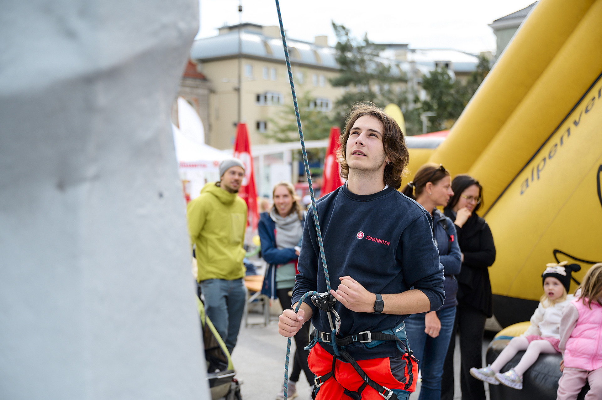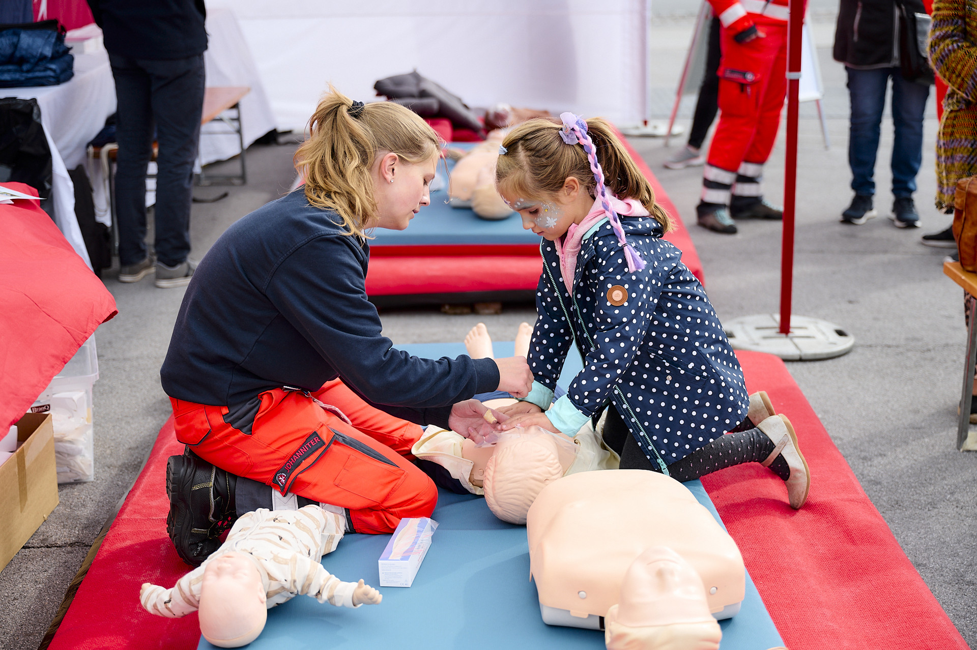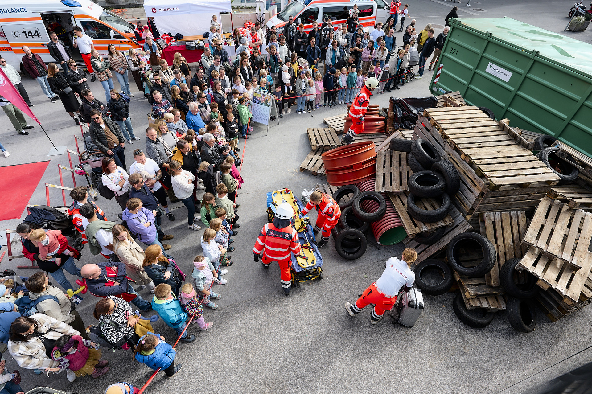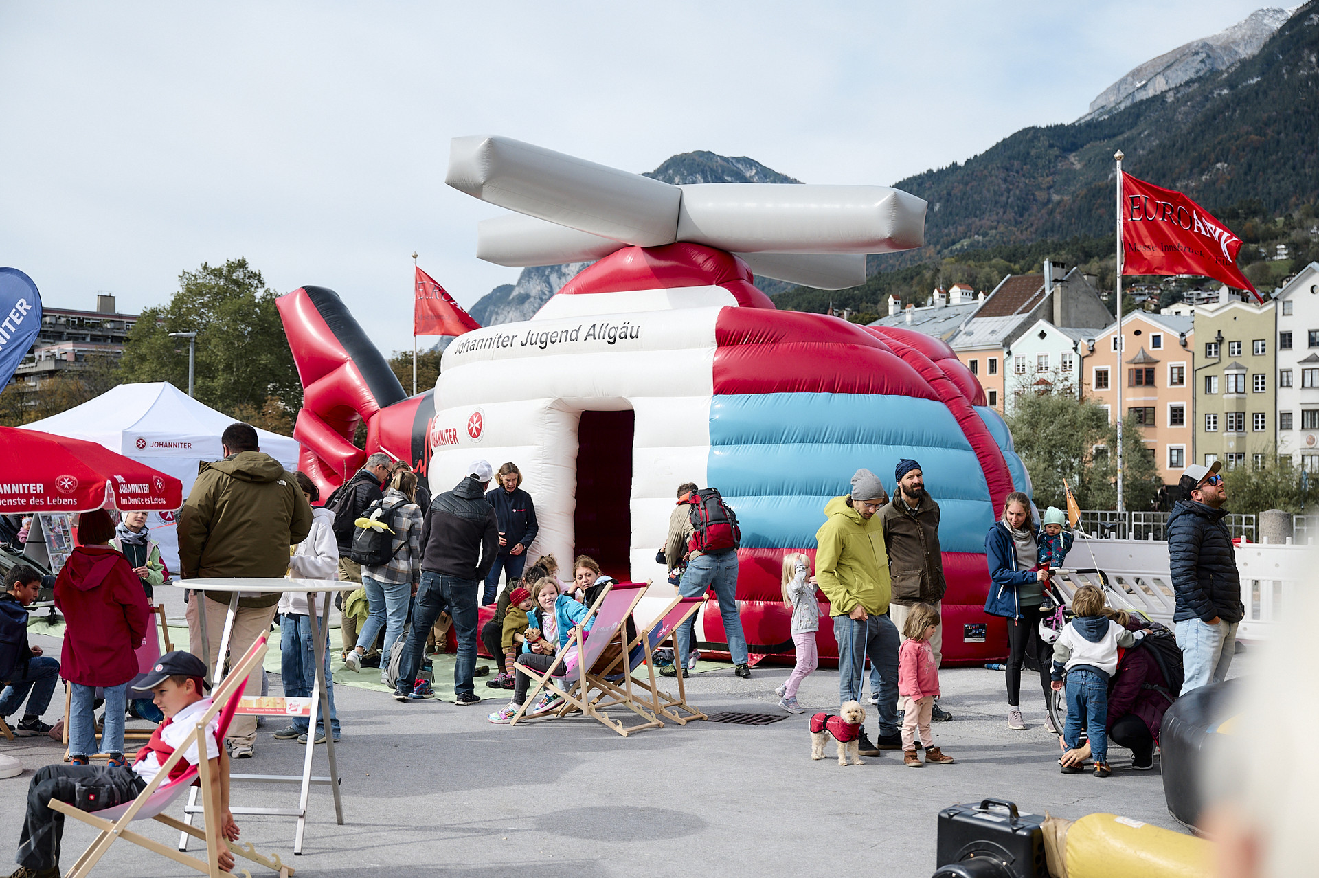 In Form von Live-Shows, Übungsstationen und Infoständen präsentierten die Johanniter Tirol ihr umfassendes Leistungsspektrum: Vom Rettungsdienst und Krankentransport über den Betreuten Fahrdienst bis hin zu Pflegeangeboten. Bei den Erste-Hilfe-Mitmachstationen konnten Besucher:innen ihre Reanimationskünste zur Schau stellen und beim Gesundheitscheck der Pflege Blutzucker und Blutdruck messen lassen. Auch für Action war gesorgt: Die Rettungshundestaffel zeigte in einer Übungsdemonstration, wie die Suche nach Vermissten in schwierigem Gelände aussehen kann.