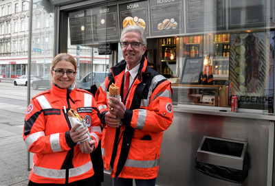 Die Spendenübergabe fand heute vor der "Zur Bosnarei", Wiens beliebtestem Würstelstand (Falstaff-Ranking 2024), statt. Johannes Bucher, Präsident der Johanniter Österreich, und Petra Grell-Kunzinger, Bundesgeschäftsführerin der Johanniter Österreich, bedankten sich bei Peter Matzner, Geschäftsführer von "Zur Bosnarei", und seinem engagierten Mitarbeiter Matthias Steindl für die Initiative und die wertvolle Unterstützung. „Gerade in der kalten Jahreszeit sind Spenden wie diese von besonderer Bedeutung. Sie helfen uns, obdachlosen Menschen in Wien noch gezielter zu helfen und ihnen ein Stück Wärme und Sicherheit zu geben“, betonte Johanniter-Präsident Bucher bei der Spendenübergabe.