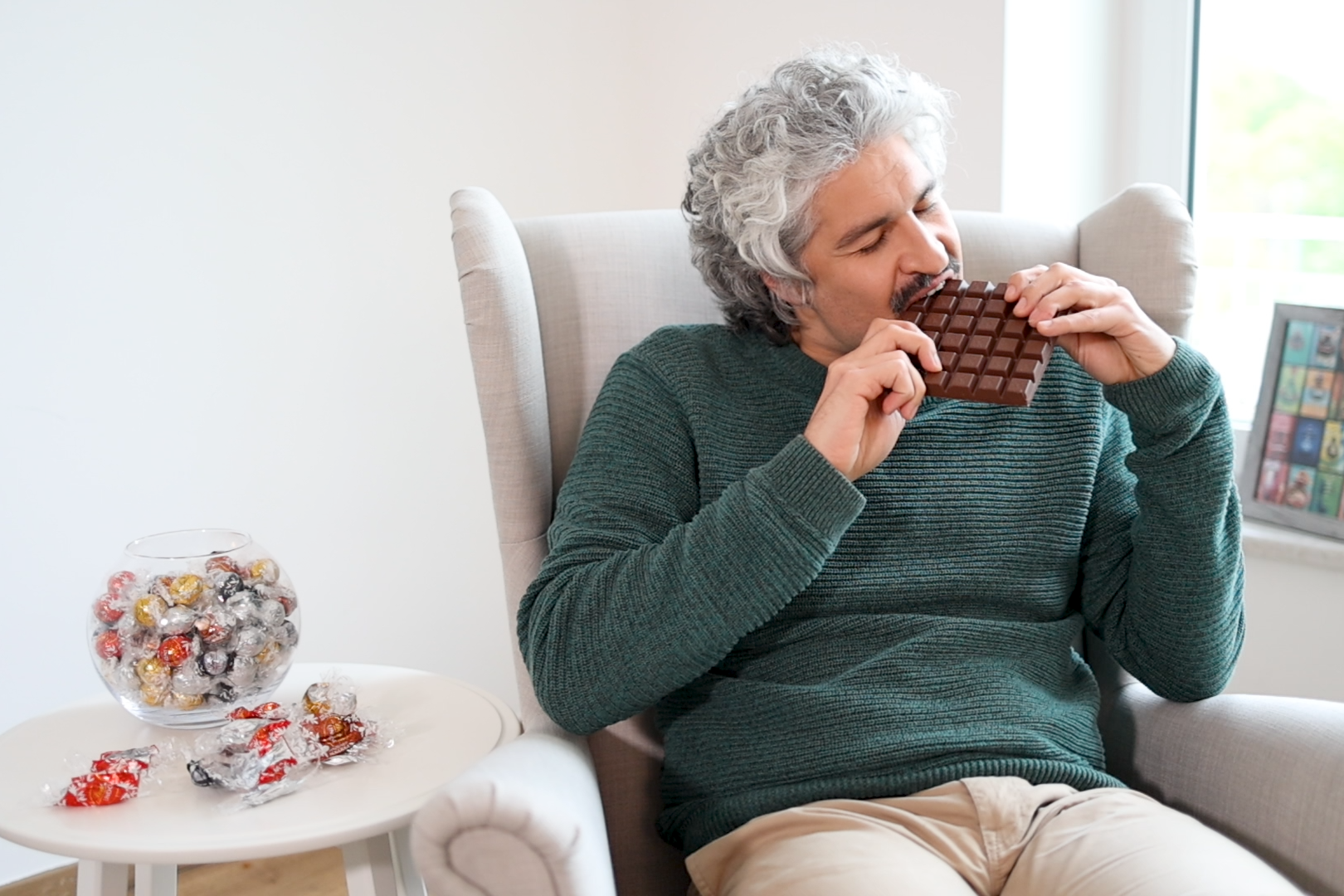 Aleksandar ist in der Wohnungslosenhilfe tätig. Er begleitet Menschen auf ihrem Weg zurück in einen geregelten Alltag. Diese Aufgabe kann sehr fordernd sein, da hilft zur Entspannung auch mal eine leckere Tafel Schokolade.